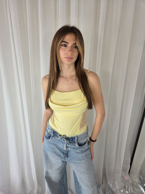 Body con collo a cratere. coppe preformate, dettaglio inserti in pizzo. Spalline regolabili.