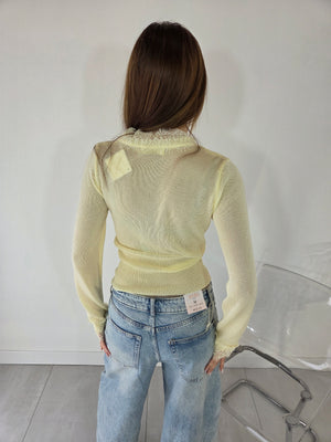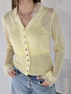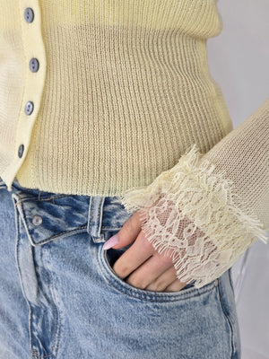Cardigan in filo con top incluso non rimovibile. Manica con dettagli in pizzo.