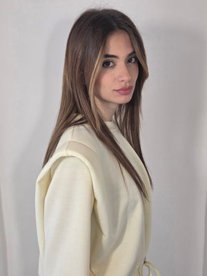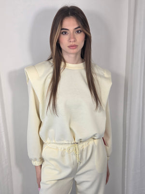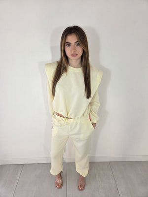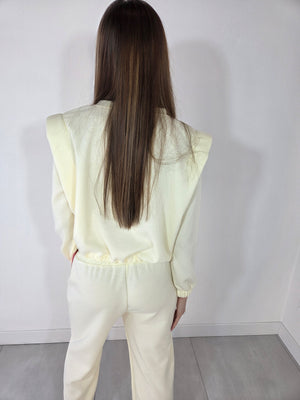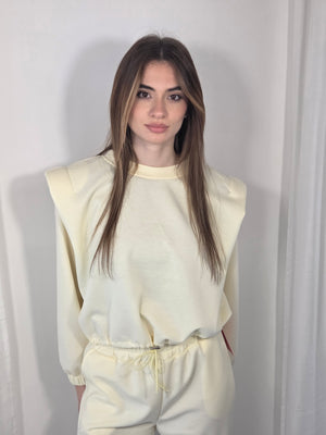 Completo in tessuto morbido composto da felpa con spalline imbottite e pantalone con elastico. Garantisce massimo comfort. Tasche laterali