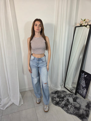 Top cropped per creare outfit casual. Canotta in cotone morbido e elasticizzato.
